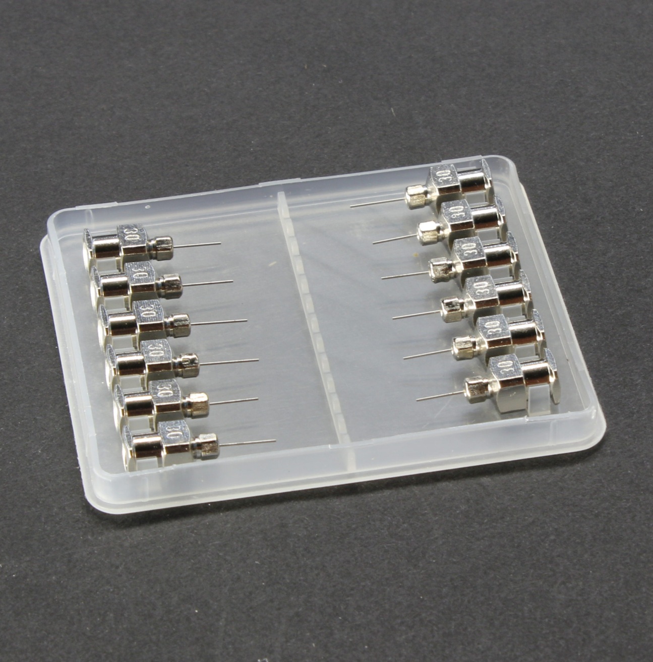 30G/13mm Fully Metal Precision Tips & Needles designed for maximum durability and performance offering exceptional strength, high-temperature resistance, grounding capability, and superior chemical compatibility with aggressive solvents with target deposit size of ~0.018–0.028″ (0.45–0.7 mm) (Box of 12)